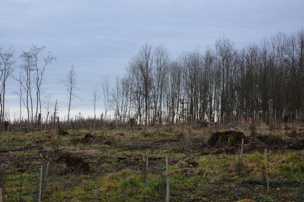Michael Nill streicht sachte über die blau-grünen Nadeln des Neuzugangs. „Der geht’s gut, die kommt durch“, befindet er und betrachtet die Atlaszeder zufrieden. Der Ludwigsburger Forstamtsleiter geht aus der Hocke und stapft durch die nasse Waldwiese im Pulverdinger Holz. „Keine Sorge“, sagt er und lächelt zuversichtlich, „bald ist das auch für den Spaziergänger wieder echter Wald“. In fünf bis acht Jahren werden ihn die neu gepflanzten Jungbäume locker überragen.