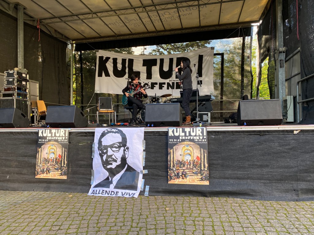Es hat recht lange gedauert, bis wir die Aufrufmail verschicken konnten, weil die Uni-Leitung unsicher war: Mobilisieren wir damit nicht zu viele Leute an den Campus und dann gibt es Chaos? Das stimmt aber überhaupt nicht. Wir haben jetzt vier Tage die Woche vier Stunden Programm und das sind einfach richtig unterschiedliche Sachen. Zum Beispiel eine Lesung von der Stabi zu Borchert oder eine Band, die aus der Chile-Solidarität der Uni Hamburg kommt – dazu noch die Abendveranstaltungen im Audimax. Es ist toll, dass wir diese ganze Bandbreite der Uni im Programm haben. Wir haben Poetry-Slam, Singer-Songwriter, das lernt man jetzt so richtig kennen. Es haben uns auch Leute geschrieben: Cool, dass ihr das macht, ich kann zwar nichts beitragen, aber ich wollte euch sagen, ich finde das cool! Ein paar haben beim Aufbauen geholfen und waren auch begeistert. So wird das wirklich von der ganzen Uni gestaltet.