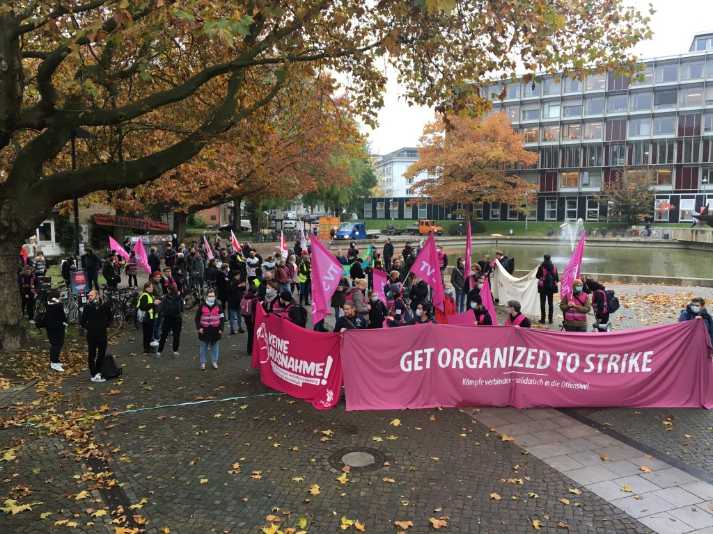 In einem Redebeitrag auf dem Campus kündigte eine Verdi-Gewerkschafterin an, die Forderungen zu verschärfen und dabei auch die Anliegen der studentischen Beschäftigten aufzunehmen, wenn es in der nächsten Tarifverhandlungsrunde am 1. und 2. November keine Bewegung gebe. „Wir machen uns warm für einen wahrscheinlich sehr langen Kampf“, sagte sie.