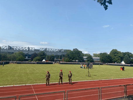 Bei strahlendem Sonnenschein versammeln sich Anfang Juni 2022 über 2.500 Studierende inklusive Angehöriger, um die sogenannte Leutnantsbeförderung zu feiern – „den wichtigsten Tag in der Laufbahn eines Offiziers“, so beschreibt es Leon*, 21 Jahre. Er studiert seit einem Jahr Psychologie an der Helmut-Schmidt-Universität der Bundeswehr (HSU) in Hamburg. Im kommenden Jahr wird er selbst zum Leutnant befördert und erreicht somit sein Ziel, Offizier der Bundeswehr zu werden. Doch nebenbei muss er auch noch sein Studium abschließen, welches für ihn als angehende Führungskraft des Militärs Pflicht ist. Wie es ihm damit geht, alles unter einen Hut zu bekommen und wie genau ein Studium bei der Bundeswehr aussieht, das hat Leon KOPFZEILE verraten.