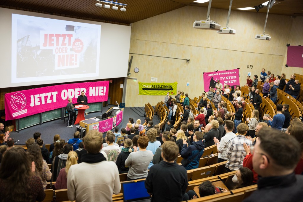 „Wir müssen jetzt in den Arbeitskampf gehen“, resümiert Marvin Hopp in seiner Rede am Samstag, den 25. Februar auf der TVStud-Konferenz in Göttingen und nimmt anschließend das Motto des Treffens auf: „Jetzt oder nie!“. Hopp ist Mitgründer der Initiative TVStud Hamburg – eine Bewegung, deren Forderung bereits im Namen vertreten ist: Sie kämpfen für einen tariflich regulierten Arbeitsvertrag für studentisch Beschäftigte (TVStud). Auf der Konferenz, die vom 24. bis 26. Februar an der Universität Göttingen stattfand, besprachen sich die mittlerweile bundesweit vertretenen TVStud-Initiativen, größtenteils bestehend aus Gewerkschaftsmitgliedern von ver.di und der Gewerkschaft Erziehung und Wissen (GEW), um über Vernetzungsstrategien zu sprechen und eine bundesweite Streikbewegung studentisch Beschäftigter vorzubereiten.
