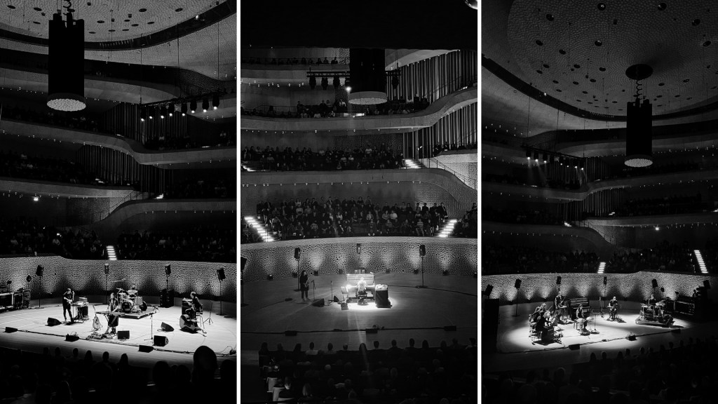 Trotz des experimentellen Klangs der Musik entsteht keine Disharmonie- dennoch entwickelt sich das Stück zu einer dystopisch anmutenden Melodie. Gegen Ende spielt sich schließlich das Streichquartett in den Vordergrund. Diese für das Portico Quartet Ensemble eher untypische Klassikreferenz entfaltet im großen Saal der Elbphilharmonie eine starke Wirkung. Nach Ende der musikalischen Terrainerkundung hallen Applaus und Pfiffe durch den Raum.