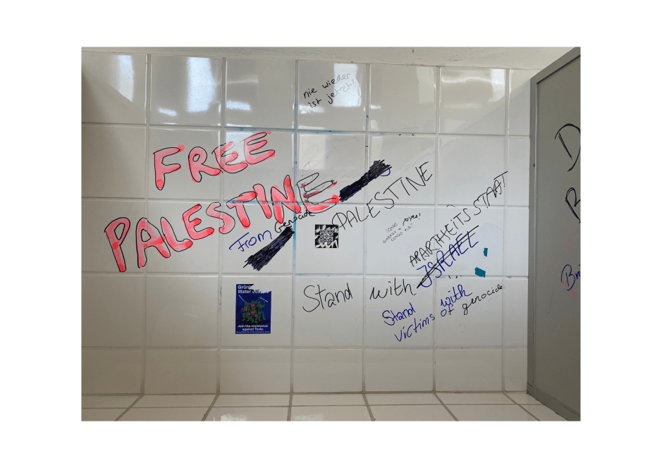 Kaum eine Kritzelei ist auf den Toiletten und Fluren der UHH so präsent wie „Free Palestine“. Auch erinnerungswürdig da natürlich, der Free Palestine Schriftzug, der uns nach den Semesterferien dieses Wintersemester an der Fassade des WiWi-Bunkers begrüßte. Aber es ist nicht immer der große Schriftzug, sondern überall der Versuch auf diesen Konflikt hinzuweisen. Die Kritzeleien geben einen Eindruck wie die öffentliche Diskussion zu diesem Thema auch außerhalb der Uni Toiletten aussehen. Denn die Studis der UHH sind sich in dieser Frage keineswegs immer einig.