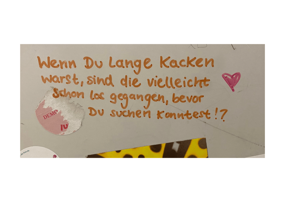 Und auch hier bleiben wir ratlos zurück: was soll gesucht werden? Wohin sind sie gegangen? Nichtsdestotrotz sind wir jetzt etwas panisch und werden in Zukunft weniger Zeit auf dem Klo verbringen.